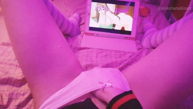 Возбужденная крошка теребит киску на хентай порно мультик